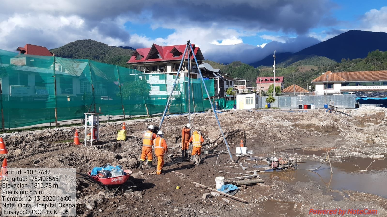 Trabajo de Campo: Incluye la implementación del programa de exploraciones en terreno, como la excavación de calicatas, perforaciones con corona diamantada, pruebas in situ como SPT, CPT y la recolección de muestras no alteradas.